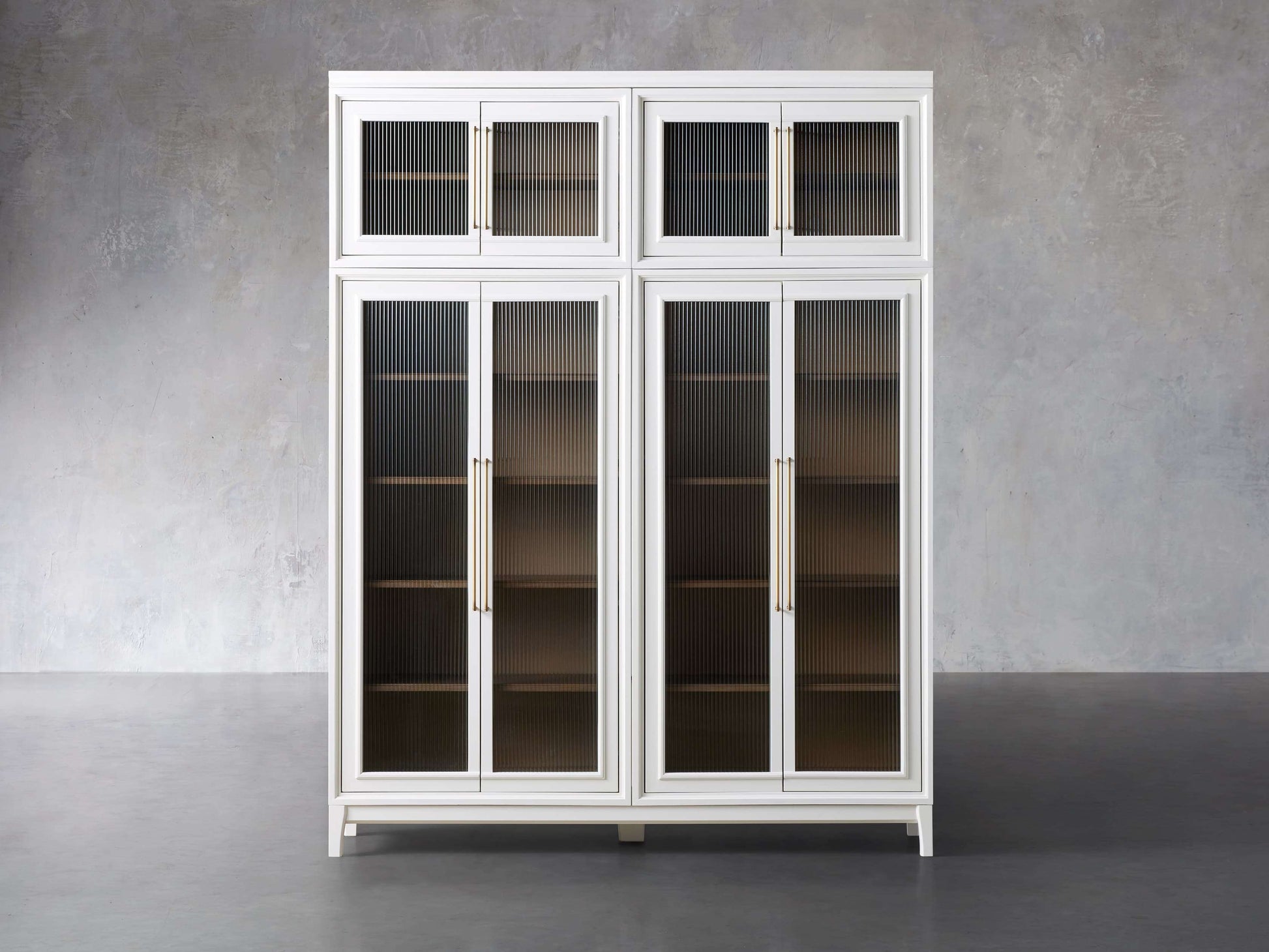 Artfully designed for both function and style, our modular Rowan Collection can be easily arranged to fit any space. Crafted by Indonesian artisans, each piece is hand-painted and hand-stained, resulting in a clean, modern aesthetic accented by iron hardware. Adorned with reeded glass detailing, Rowan is perfect for storing everyday items or for displaying your favorite curiosities.