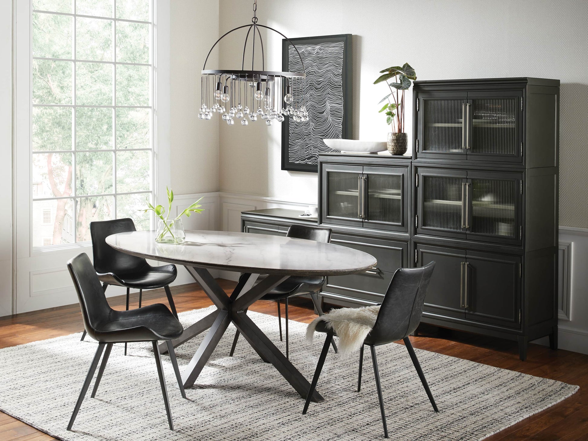 - Ethereal and exquisitely crafted reeded glass adorns our glass-door cabinets, adding unique, transformative texture and subtle opaqueness that obscures cabinet contents.