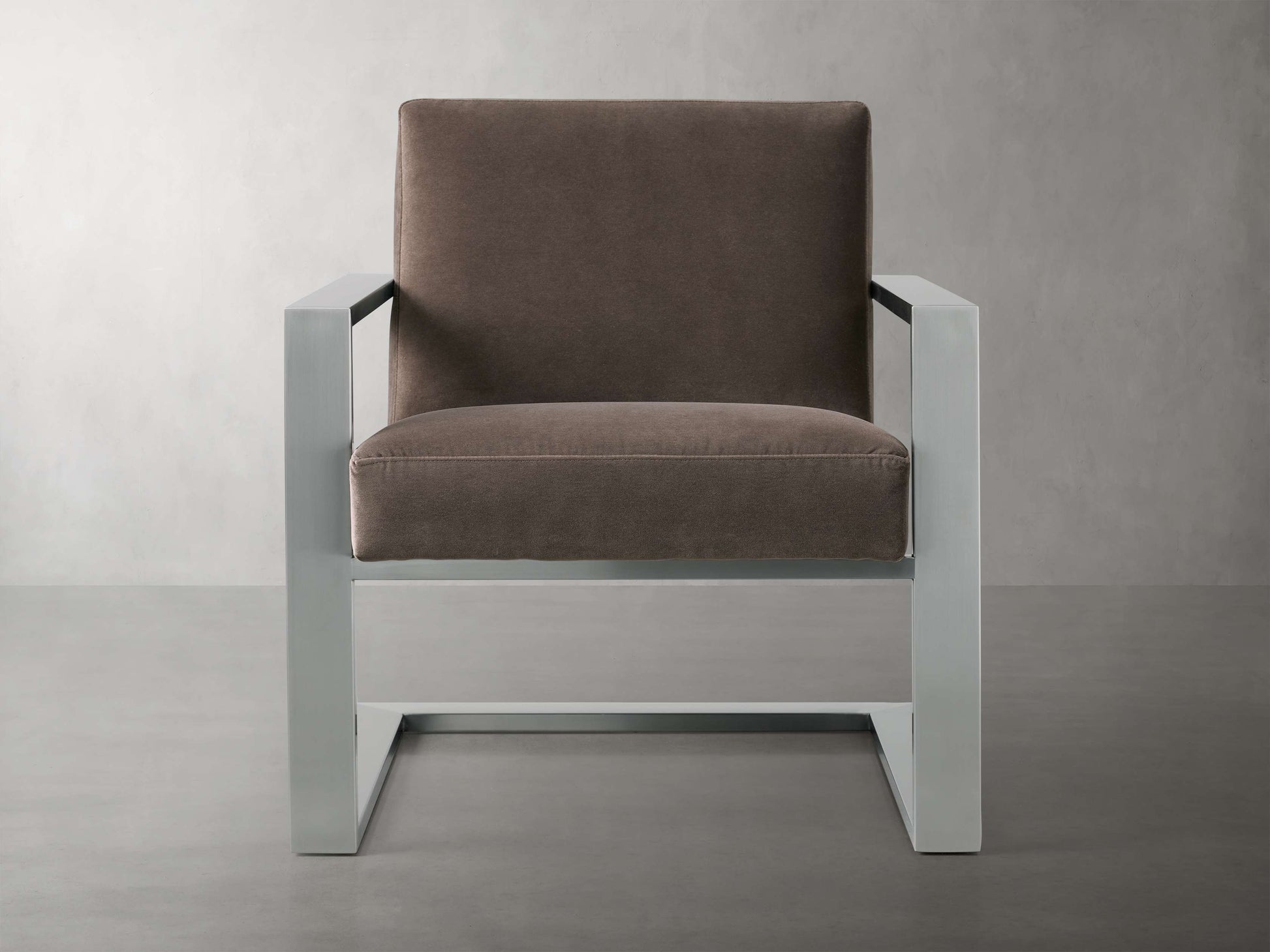 Blending polished stainless steel and soft leather, our Sabina Chair brings a pop of thoughtful design into any conversation area. Featuring an angular floating frame paired with expertly tailored upholstery around sumptuous cushions, Sabina creates a beautiful mixed-material accent piece that will fit seamlessly into your home’s aesthetic.