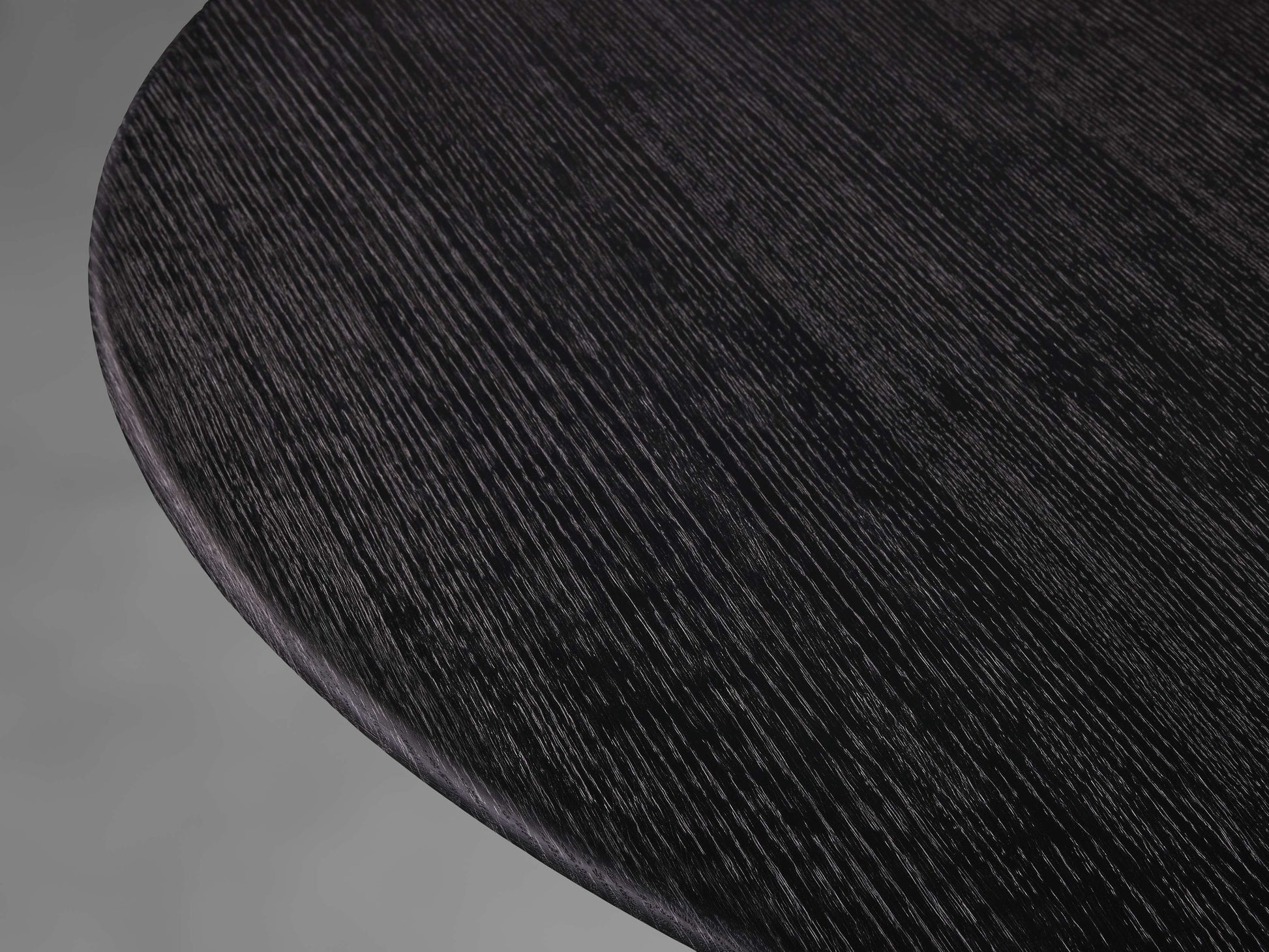 - Wood tabletops are constructed from solid oak and oak veneers complemented by either an Ebony or Chestnut finish.