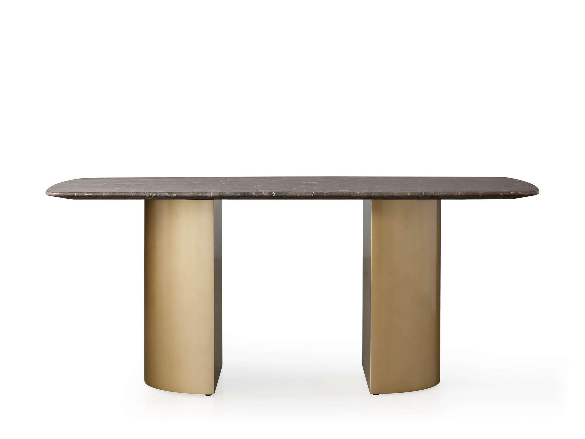 - Stone tabletops are constructed from Carrara marble, cream marble, or espresso brown stone, featuring reinforced engineered hardwood joinery to the base for added strength and stability.