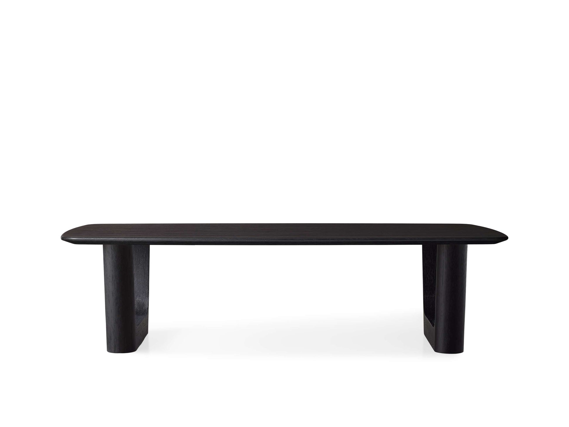 - Wood tabletops are constructed from solid oak and oak veneers complemented by either an Ebony or Chestnut finish.