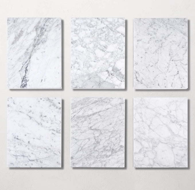 - Italian Carrara Marble is honed and sealed for a matte finish that enhances the stone's beauty and subtle vein patterning
