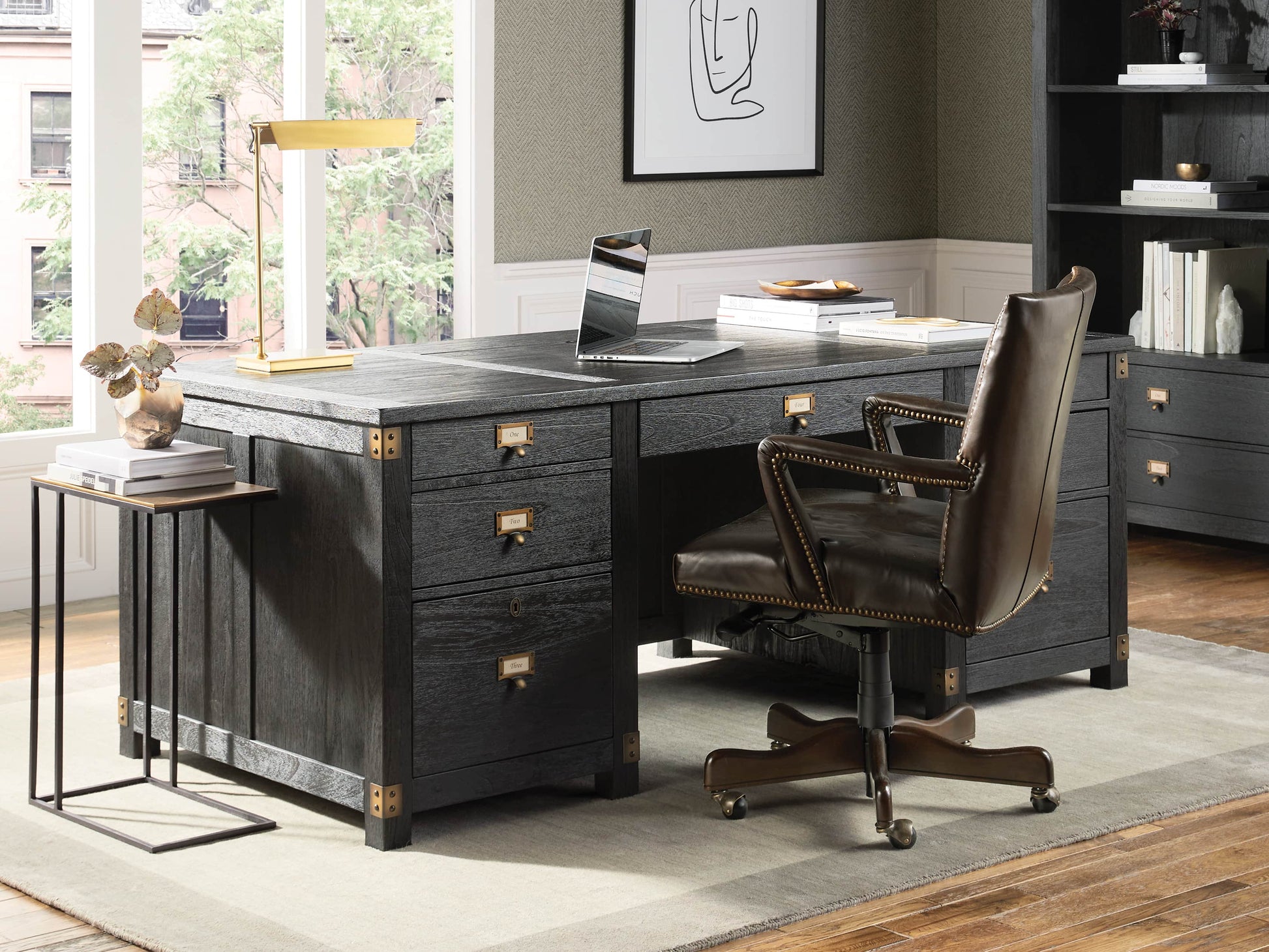 Inspired by 1900s, turn-of-the-century furnishings, our Telegraph Office Collection is craftsman-built for exceptional beauty and contemporary functionality. Each piece of this sophisticated office suite is traditionally constructed from mindi wood with reinforced frames. Finishes are painted and distressed by hand and accentuated by brass hardware, corner brackets, and drawer-front label frames. Removable trays, adjustable shelves, and spacious drawers provide generous storage and the organization options needed to make your home office as productive as possible.