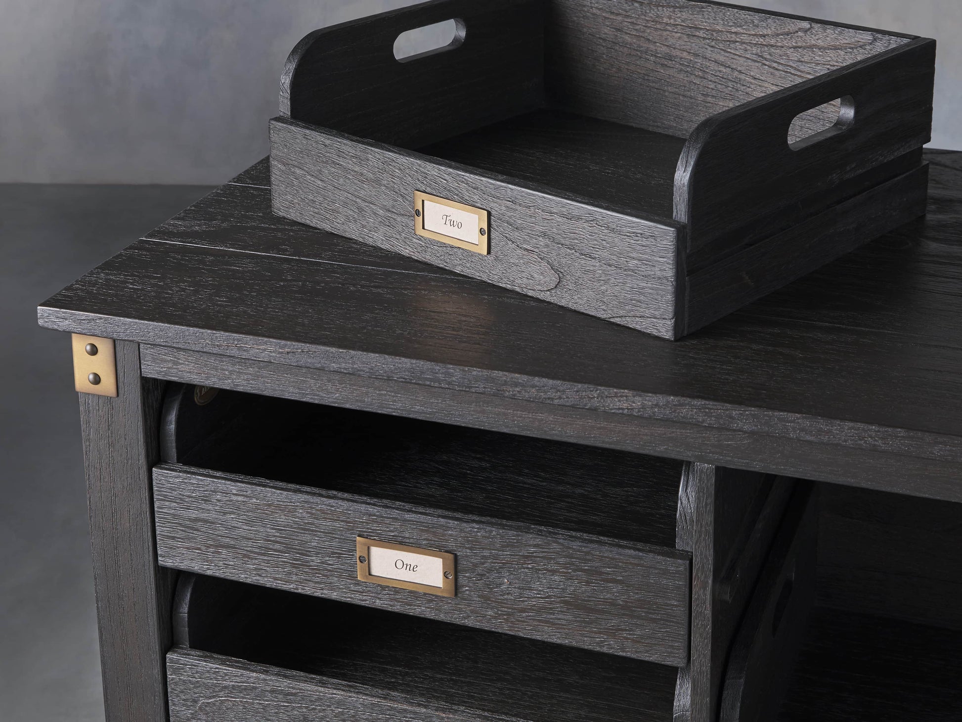 Our Telegraph Office Collection is craftsman-built for exceptional beauty and contemporary functionality. Each piece of this sophisticated office suite is traditionally constructed from mindi wood with reinforced frames. Finishes are painted and distressed by hand and accentuated by brass hardware, corner brackets, and drawer-front label frames. Removable trays, adjustable shelves and spacious drawers provide generous storage and the organization options needed to make your home office as productive as possible.