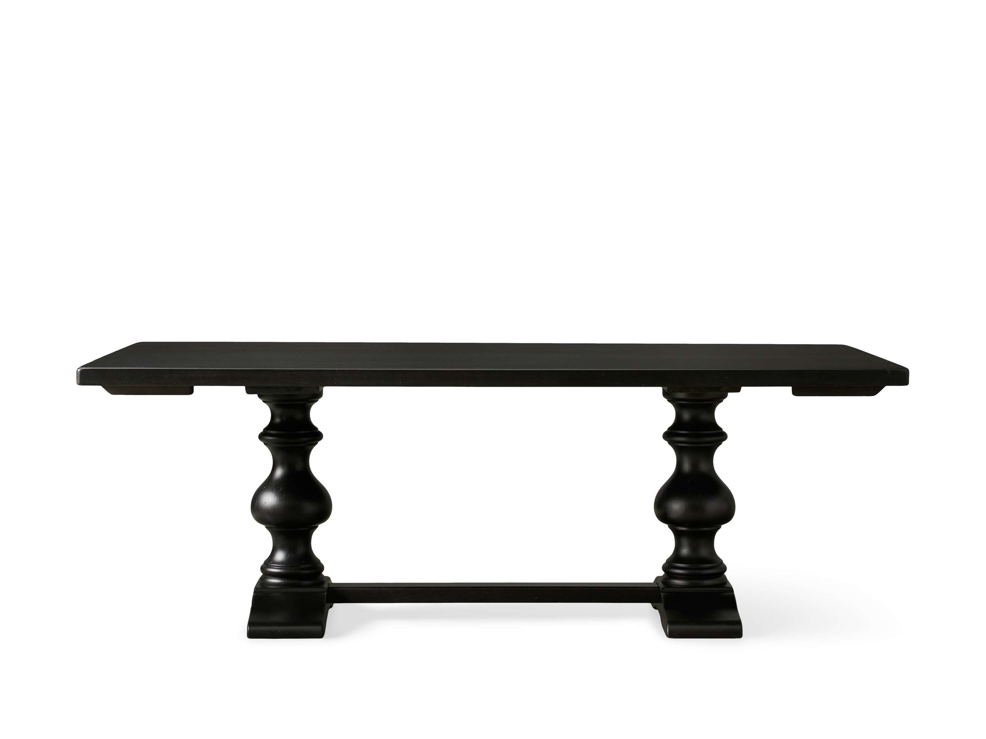 - For a distinctive yet traditional silhouette, legs are connected by a horizontal trestle.