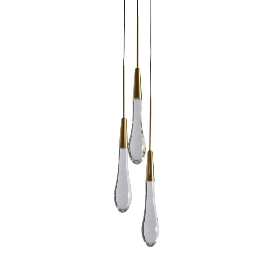 Featuring adjustable PVC cords cascading into integrated LED lights handcrafted from seeded glass, this Lighting Collection mimics the look of a fallen waterdrop.