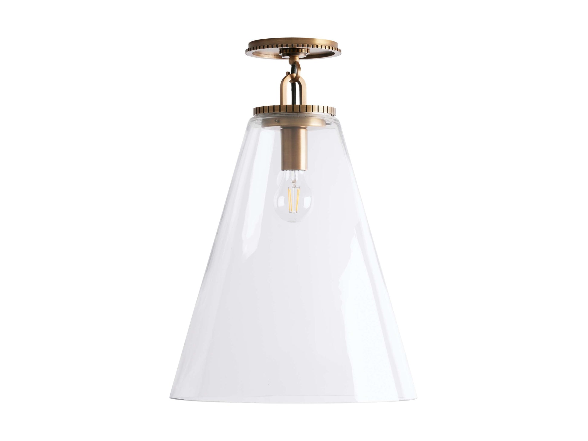 - Crafted from steel in either a brass or bronze finish with your choice of a clear or milk glass cone.