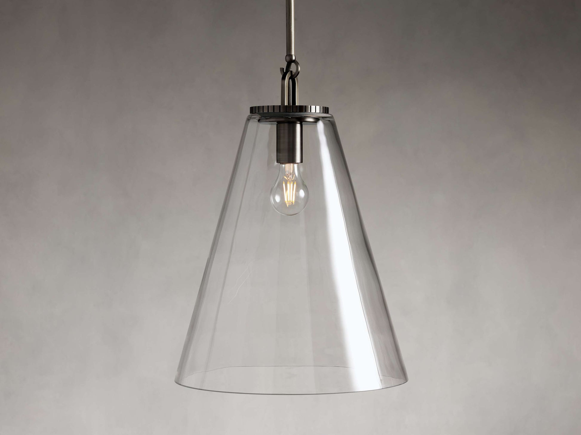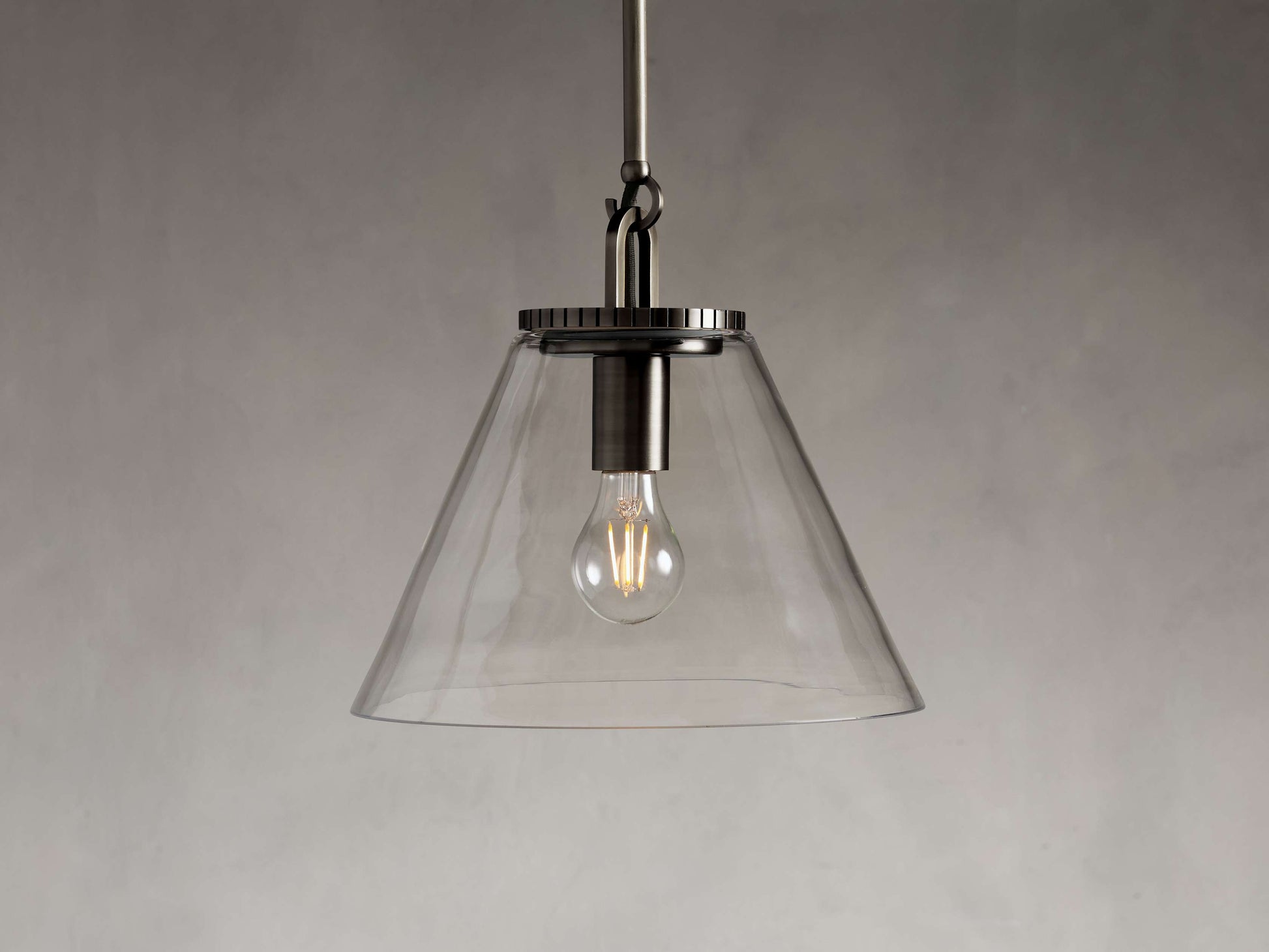 - Crafted from steel in either a brass or bronze finish with your choice of a clear or milk glass cone.